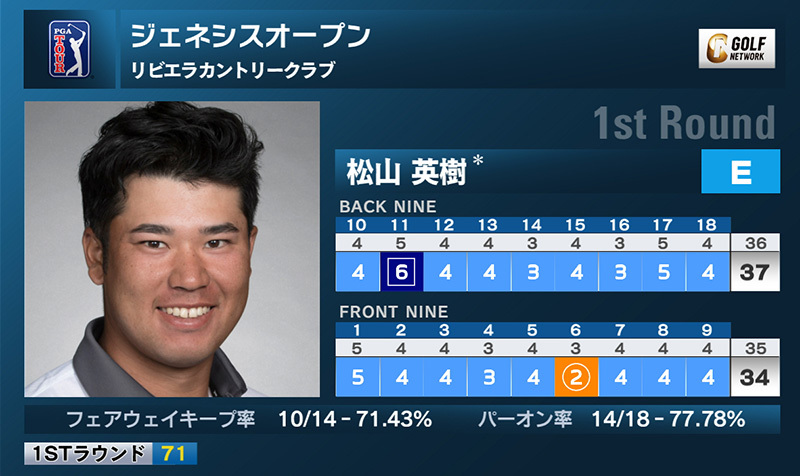 米男子ツアーのジェネシスオープン(現地時間15日/カリフォルニア州/リビエラCC)の第1ラウンドの残りと第2ラウンドが行われたが、連日の日没サスペンデッドに。松山英樹は第2ラウンドをスタートできず、第1ラウンドを終えイーブンパー暫定72位タイとなった。