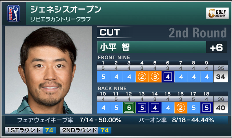 米男子ツアーのジェネシスオープンは現地時間16日、カリフォルニア州のリビエラCCを舞台に順延となった第2ラウンドが行われ、小平智は通算6オーバーで予選落ちとなった。