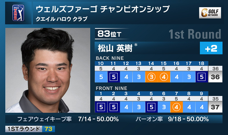 米男子ツアーのウェルズファーゴ チャンピオンシップ(現地時間2日/米ノースカロライナ州/クエイルホロークラブ)初日が終了し、松山英樹は3バーディ、5ボギーの2オーバー83位タイとなった。
