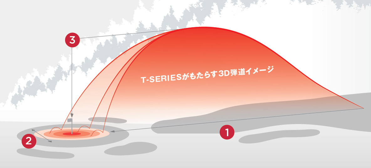 単なる飛びではなく、パワフルで、横方向(左右ブレ)にも、縦方向(高さ/キャリー)に対しても圧倒的な安定性をもたらすT-SERIESだけの3Dアイアン弾道が、かつてない新しい飛びを生み出し、アイアンショットを飛躍的に進化させる。