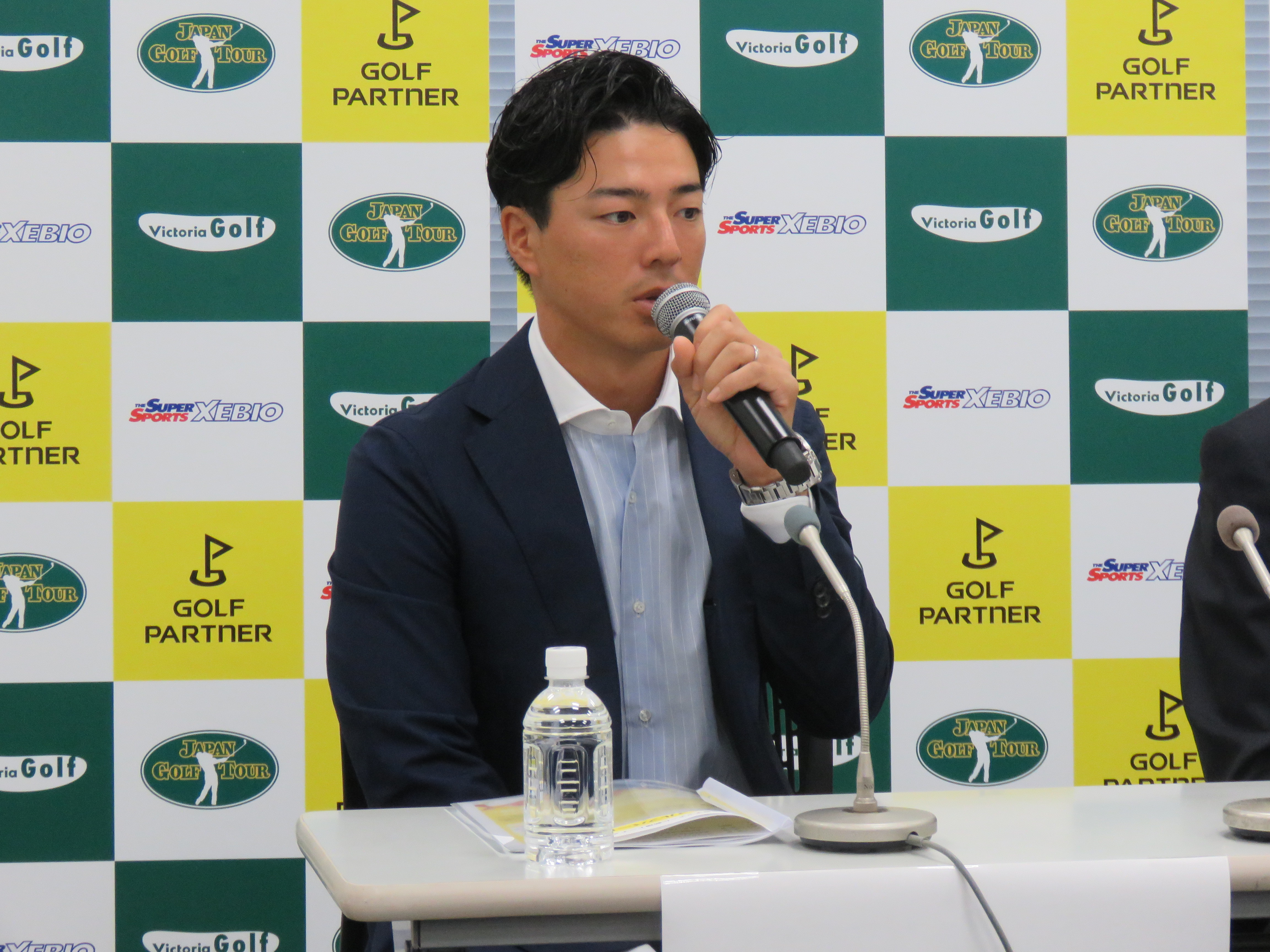 都内のゴルフパートナー本社で会見が開かれ、同社社長の石田純哉氏、同社執行役員の川崎康史氏、東日本振興株式会社(取手国際ゴルフ倶楽部)社長の井口晴雄氏、日本ゴルフツアー機構(JGTO)会長の青木功、JGTO選手会会長の石川遼が出席した。