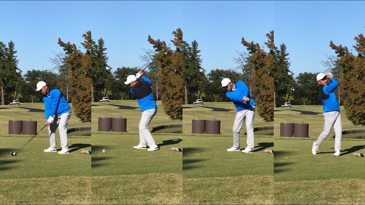また、体の回転がよどみなく、リズム良くターンしているのもショットの安定性につながっているといえます。フィニッシュで左足が必ずめくれることからも分かるに、左足のカカトを軸にして、左足、左ヒザ、腰をクルッと回転させている。この部分はアマチュアゴルファーにも参考にして欲しいところです。
