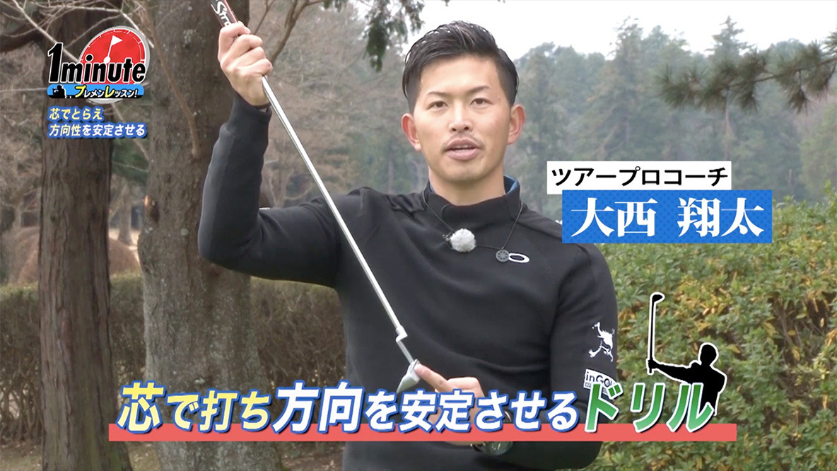 ゴルフネットワークで放送中の「プレメンレッスン!Season3」に出演する大西翔太ツアープロコーチ。青木瀬令奈プロのコーチとしてツアーに帯同し、妹は女子ツアーで活躍する大西葵プロという大西コーチは、メンタルやカラダのケアなど様々な角度からゴルフを追求し、女性やジュニアなど幅広い層のアマチュアにもレッスンを行っています。今回は、パターを芯で捉えるためのドリルを紹介します。