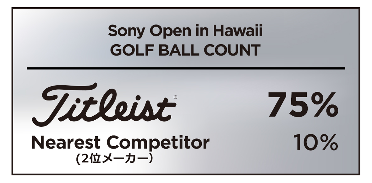 ソニーオープン・イン・ハワイには144名のトッププレーヤーが出場。そのうちの108名がタイトリスト ゴルフボールを使用し、タイトリストは75%の圧倒的使用率を獲得してNo.1ボールブランドになった。