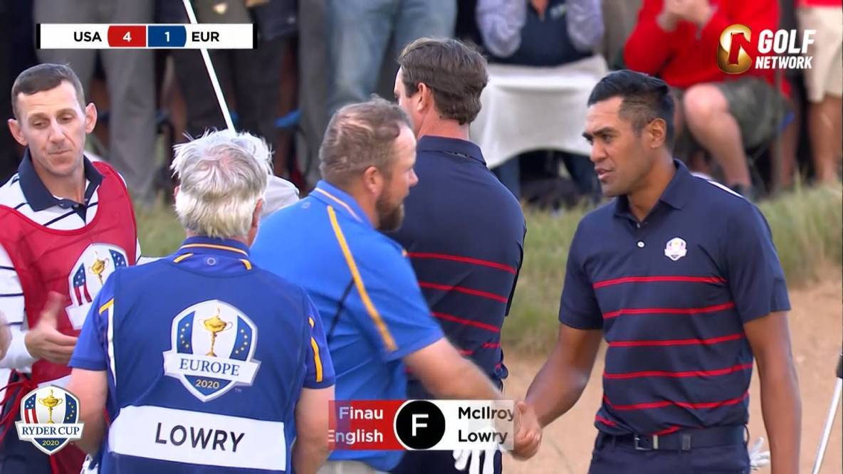 午後のマッチ3は、米国選抜のトニー・フィナウ&ハリス・イングリッシュが欧州選抜のローリー・マキロイ(北アイルランド)&シェーン・ローリー(アイルランド)を4&3で下した。