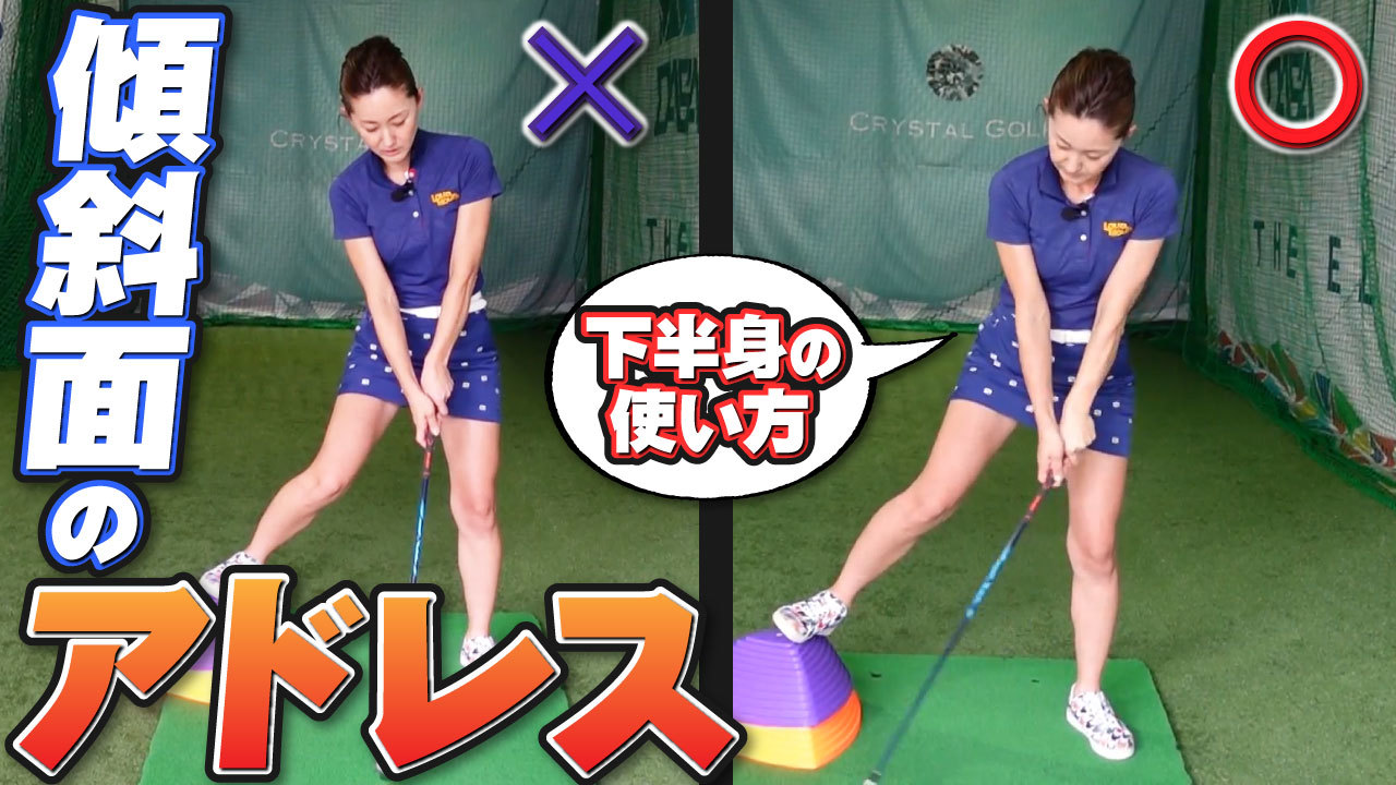【動画】みんな苦手な左足下がり攻略ポイント2つ・下半身を使って「潰して、潰して、潰して、打つ!」