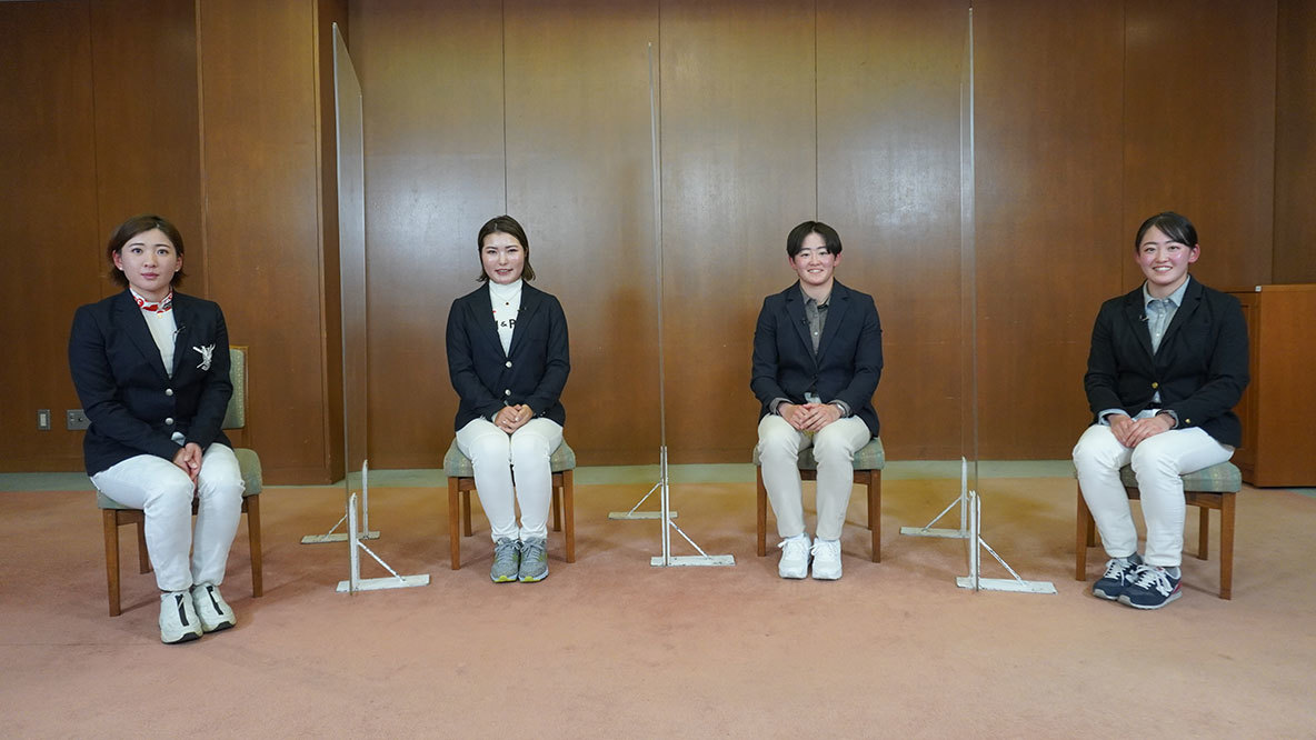 女子プロゴルファーの永井花奈、高橋彩華、岩井明愛、岩井千怜が、CSゴルフネットワークの番組「ゴルフ真剣勝負 the MATCH 国内女子ツアー2022開幕直前ダブルスマッチ(2022年2月放送・見逃し配信中)」に出演、新シーズン開幕を前にラウンジトークを繰り広げました。