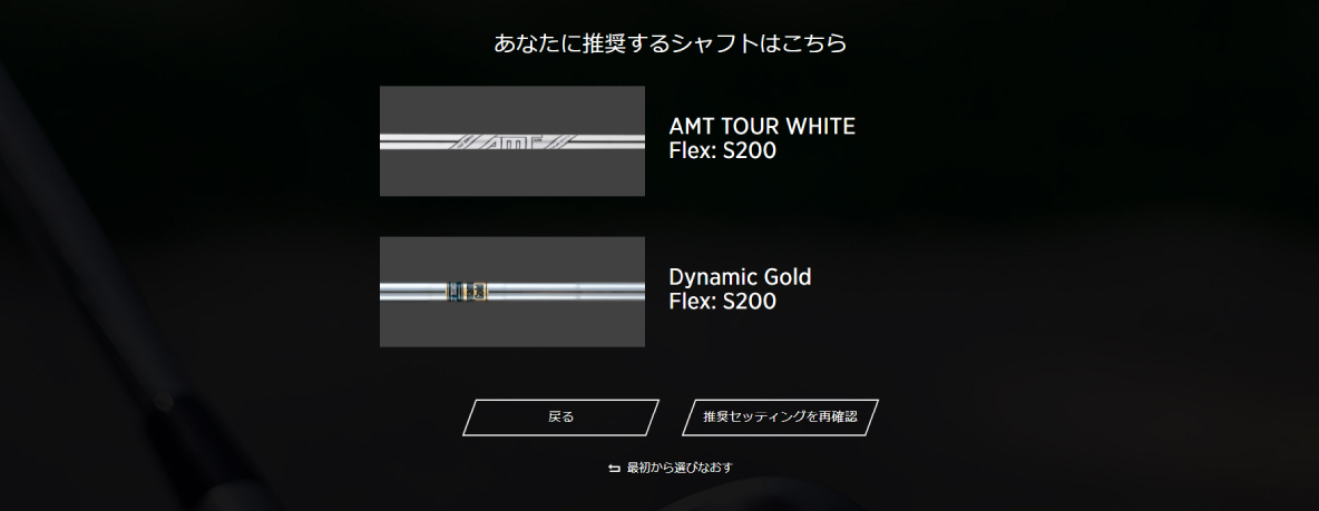 するとベストマッチなセッティングが提案される。また、シャフトとフレックスを選ぶことでベストマッチなシャフトも推奨されるのだから驚きだ。