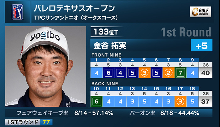 米男子ツアーのバレロテキサスオープンは31日、米テキサス州のTPCサンアントニオ(7,438ヤード・パー72)で第1ラウンドが行われ、金谷拓実は5オーバー133位タイとなった。