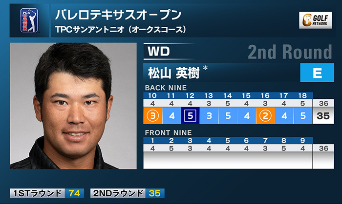 米男子ツアーのバレロテキサスオープンは1日、米テキサス州のTPCサンアントニオ(7,438ヤード・パー72)で第2ラウンドが行われたが、松山英樹は前半を1アンダーで回ったところで棄権した。