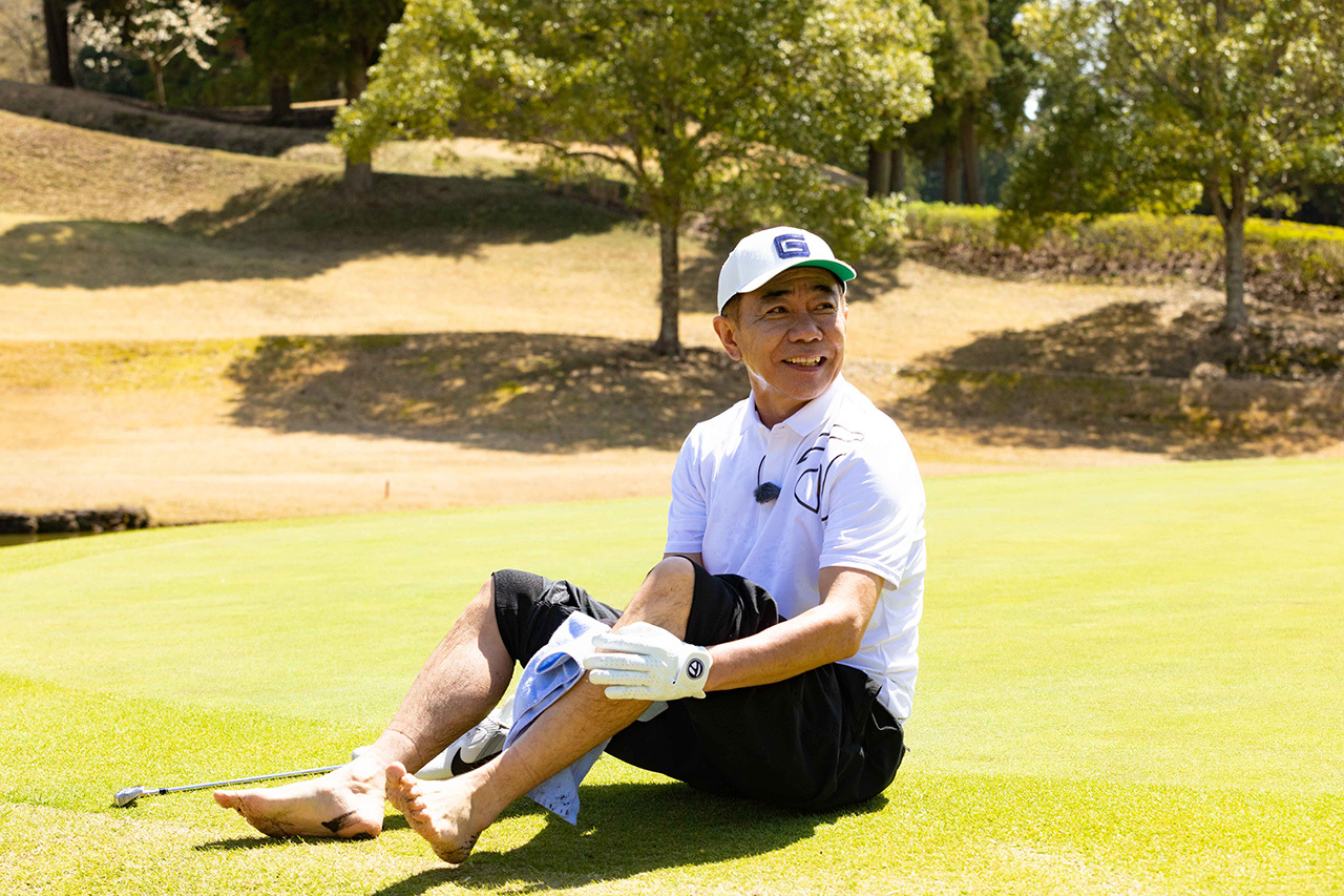 コロナ禍になってからゴルフをしていなかったという中井さん。舞台が多く感染対策として人と接する機会を極力さけていたそうですが、今回は18年ぶりの4人でのゴルフということで出演を快諾。しかし現場の様子に少しひるんだようで「こんなに本格的なカメラが回っているとは思わなかった。コロナ禍でクラブも握ってないし、断ればよかった(笑)」と冗談をとばします。ゴルフを始めたのは比較的早かったという中井さんですが、「年10回やったことはない」というお付き合いのゴルフが多いそう。それでも、高校時代にテニスでインターハイに出場した抜群の運動神経でゴルフもなかなかの腕前。対決は「佐藤浩市がいますから、僕は何もせずにバラエティ班には勝てると思います。それより久しぶりに4人でやれるので、嬉しいですね」と1日を楽しみにしているようでした。