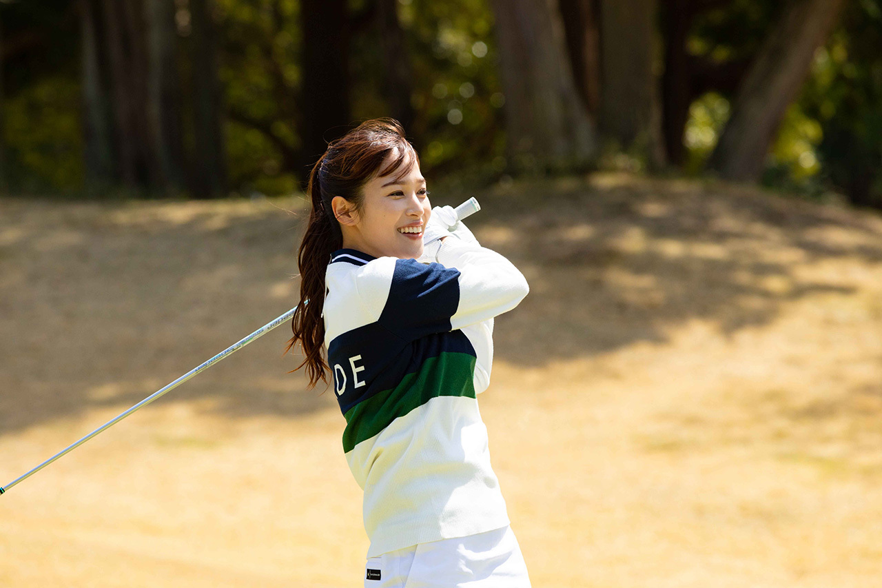 鷲見玲奈、春のゴルフコーデで可憐にコースへ