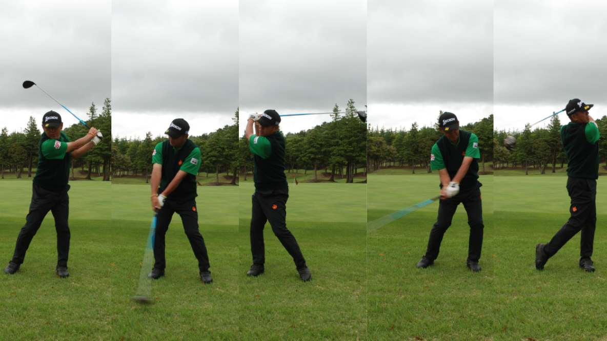 これではタイミングが合わず、なんとかインパクトで合せることができても、いつもの飛距離は望めません。