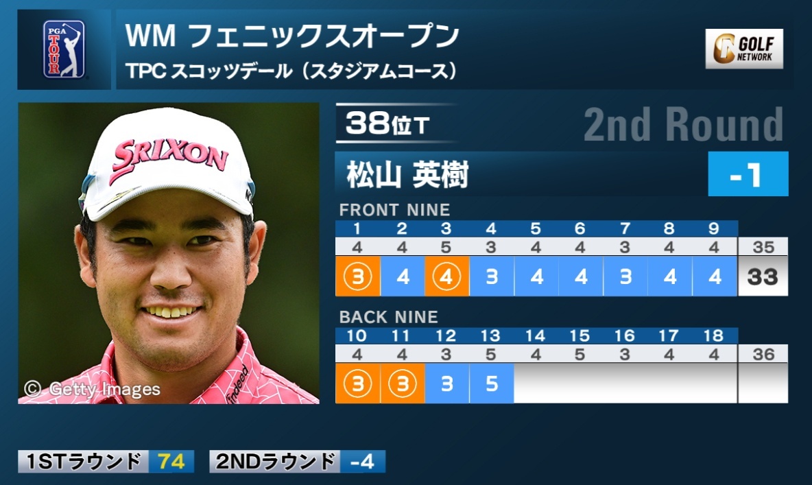 通算3オーバー93位タイから出た大会2勝の松山英樹は、13ホールを終えて4バーディと通算1アンダー暫定38位タイにつけている。