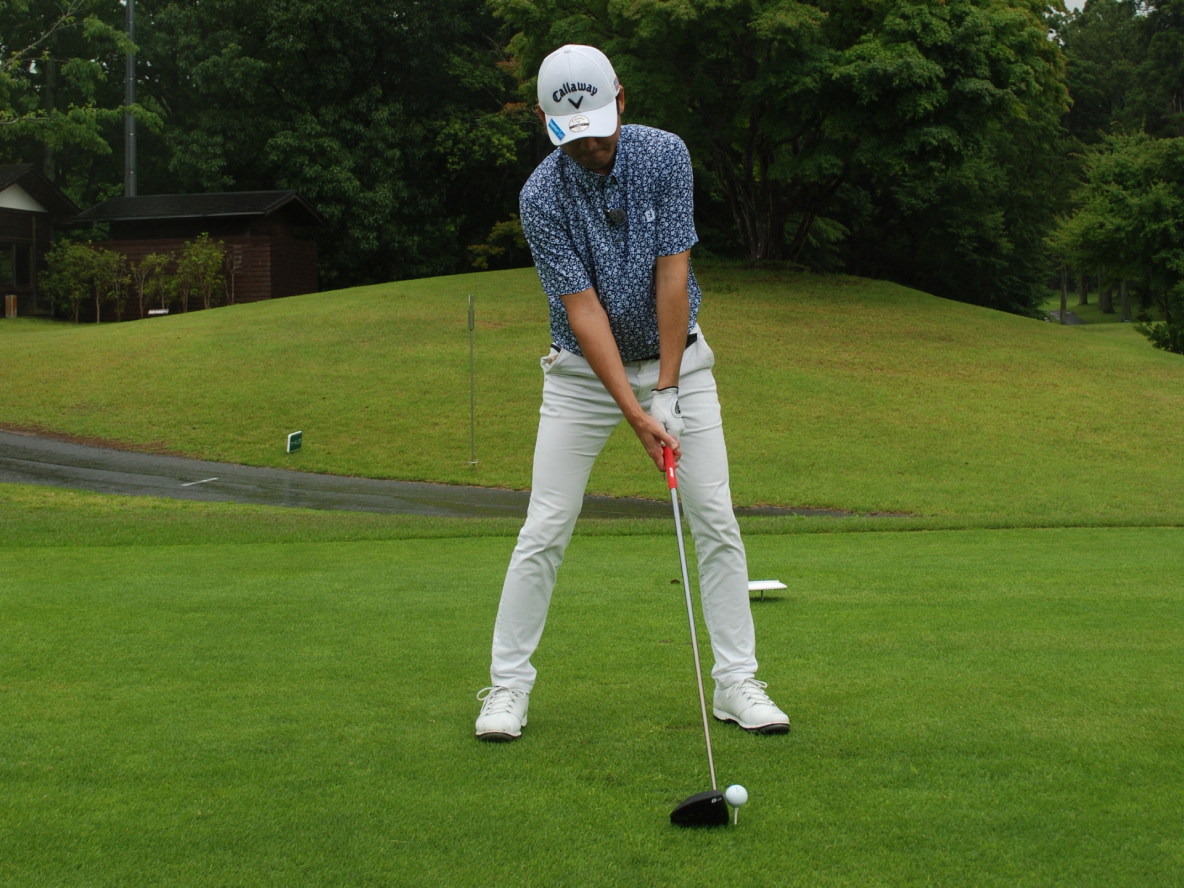 さらに付けくわえれば、ドローの場合はトゥ寄り。フェードの場合はヒール寄りで打つとギア効果でボールが曲がりやすくなります。これに関しては、ボールを置く位置だけで変えられるのでぜひ試してみてください。