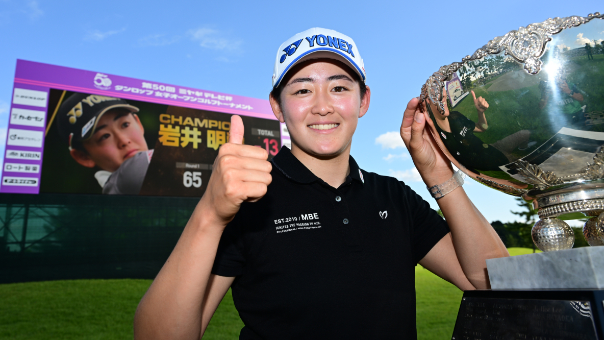 岩井明愛が国内女子ツアーのミヤギテレビ杯ダンロップ女子オープンゴルフトーナメント(宮城県/利府ゴルフ倶楽部)でツアー史上4人目となる2週連続の完全優勝を達成した。