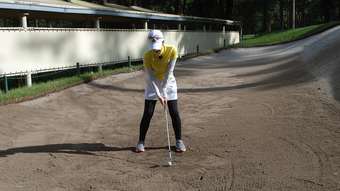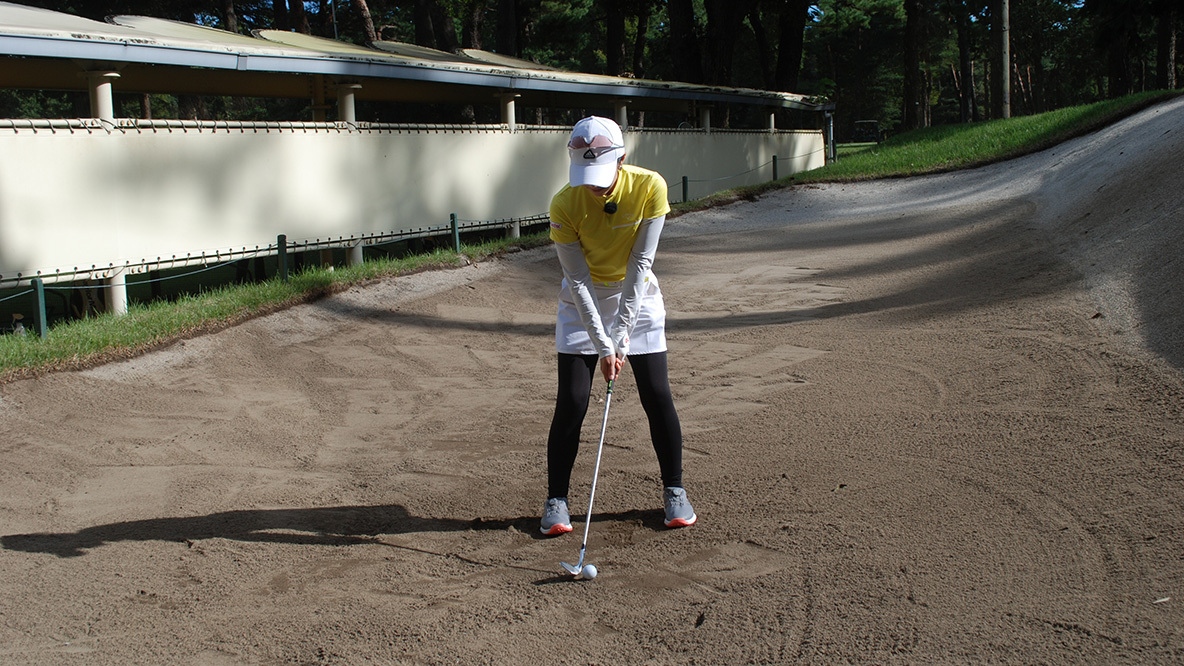 大江香織、バンカーでは左足のツマ先前にボールを置きましょう