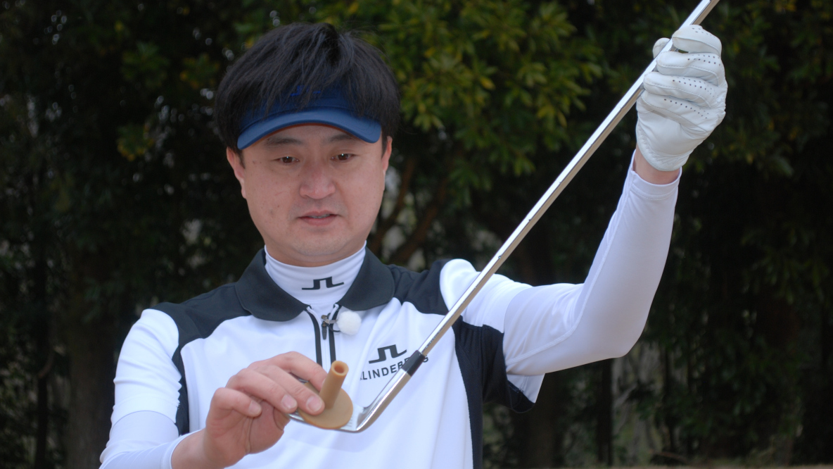 最後に、ボールが右へ飛んでいくミスが起きた場合の対策について。左に飛ぶことが多いツマ先上がりですが、ボールが右に飛び出すこともあります。その原因は、トゥに当たることにあります。
