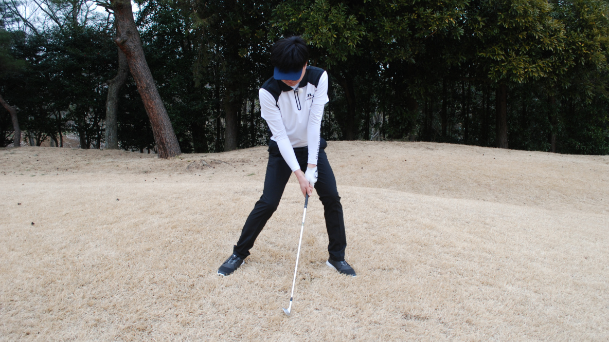 今回は、ツマ先下がりの打ち方をレッスンしましょう。