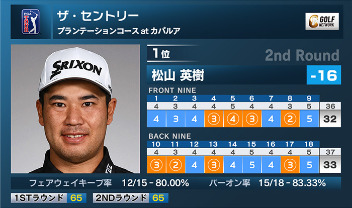 米男子ツアーの今季初戦、ザ・セントリー(米ハワイ州/プランテーションコース at カパルア)は3日に第2ラウンドが終了。松山英樹は2位タイから8バーディ、ノーボギーの「65」をマークし、通算16アンダー単独首位で週末を迎える。