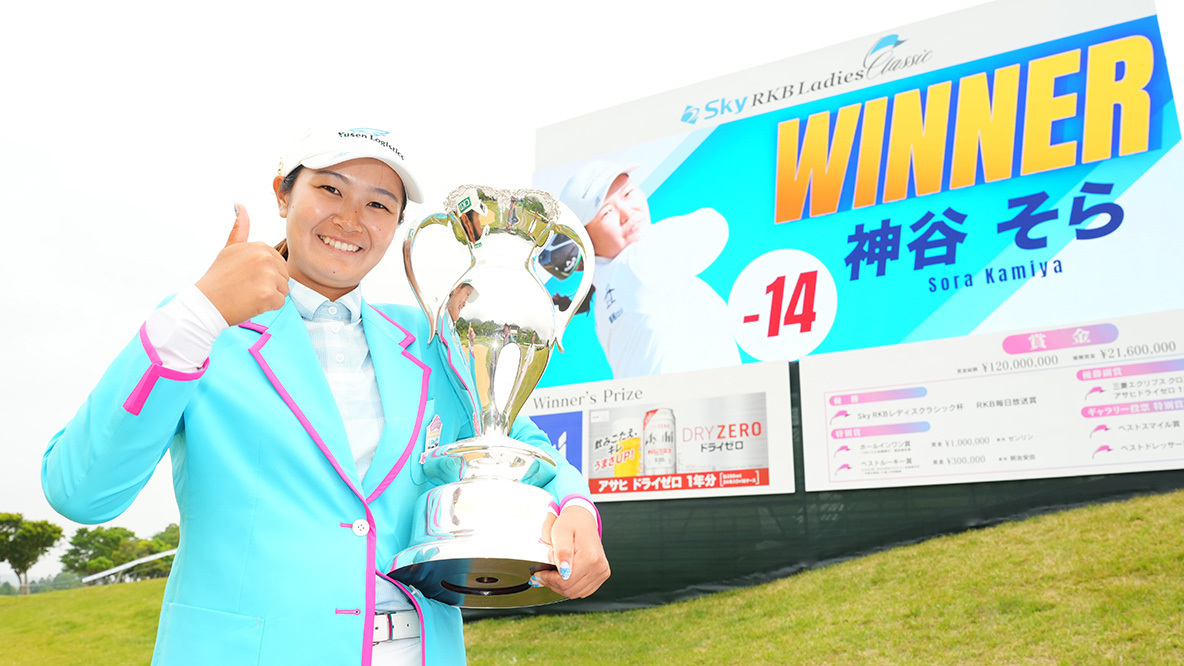 国内女子ツアーのSky RKBレディスクラシックは18日、福岡県の福岡雷山ゴルフ倶楽部(6,489ヤード・パー72)で最終ラウンドが行われ、首位タイから出た神谷そらが「67」で回り、通算14アンダーでツアー通算3勝目を達成。最終18番パー5のイーグルなど上がり4ホールで5つ伸ばし、約1年半ぶりのタイトルを手にした。