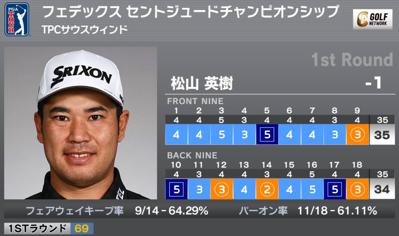 米男子ツアーのフェデックスセントジュードチャンピオンシップは7日、米テネシー州のTPCサウスウィンド(7,288ヤード・パー70)で第1ラウンドが行われ、昨年覇者の松山英樹は4バーディ、3ボギーの「69」で回り、1アンダー27位タイ発進となった。