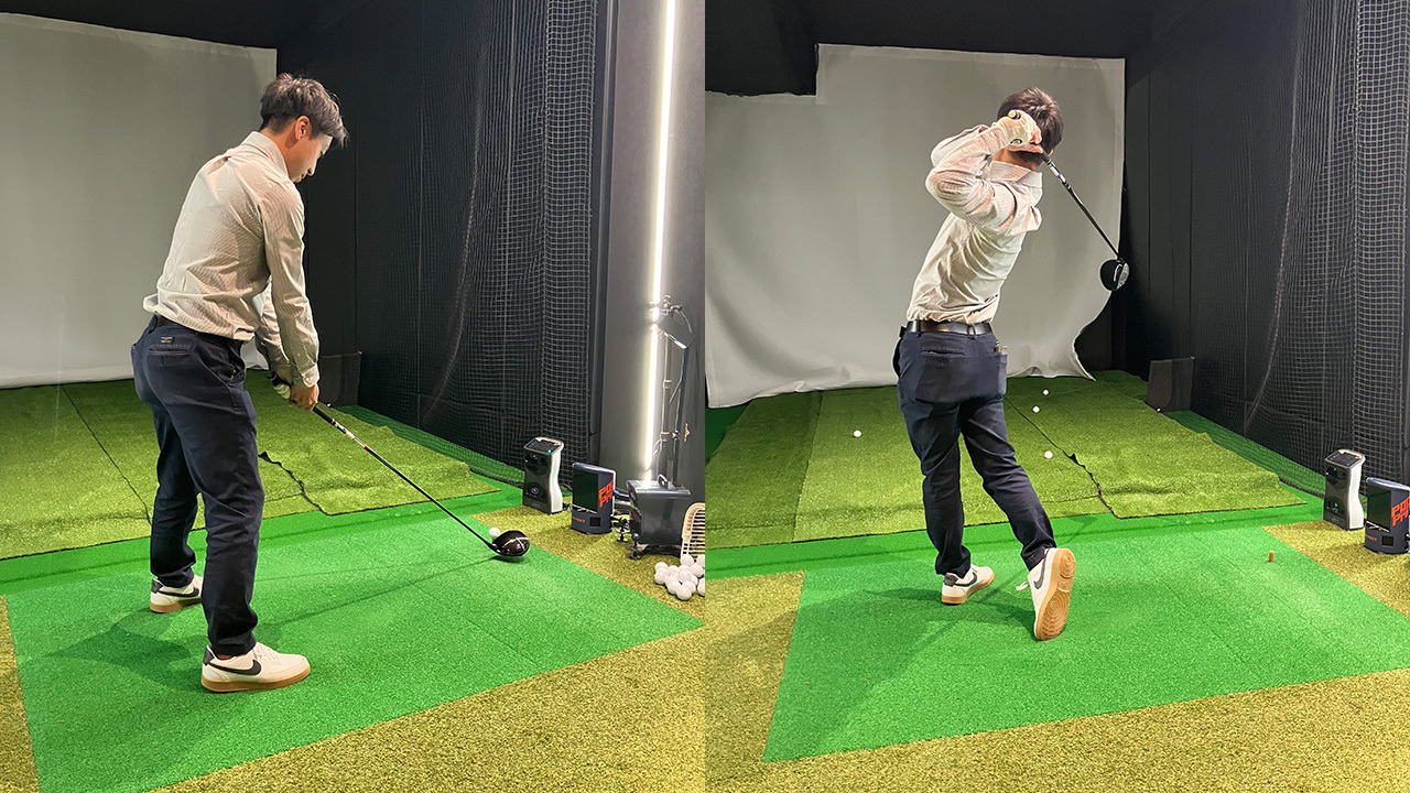 早速、ゴルフネットワーク社員の森田が試打し、新モデルを体感。森田は学生時代、関西大ゴルフ部に所属し、ベストスコアは68という上級者。“イイ顔”とインパクト音好きのクラブマニアだ。