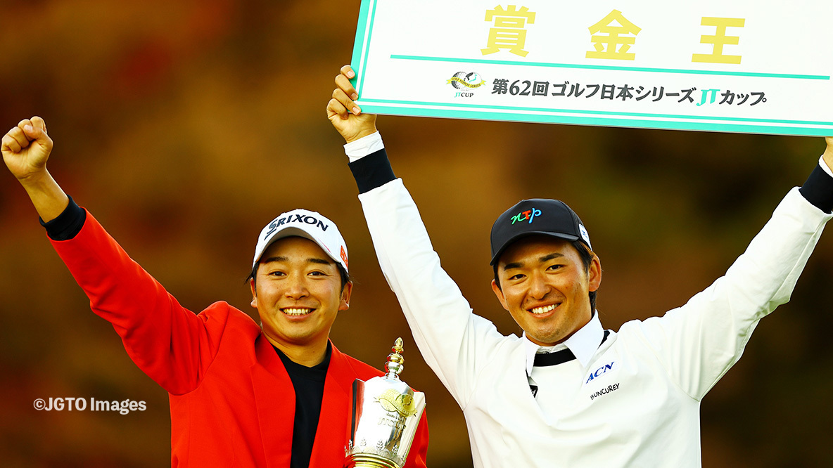 賞金ランクトップで最終戦を迎えた金子駆大は通算4アンダー7位タイに入り、自身初の賞金王に。今シーズンは出場24試合で2勝(関西オープンゴルフ選手権競技、三井住友VISA太平洋マスターズ)を含むトップ10入り11回を記録した。