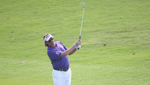 2日間を終えて単独首位に立ったのは、ツアー通算21勝のミゲール・A・ヒメネス(スペイン)。今週は風邪に悩んでいる51歳だが、大会初日には9番でイーグルを奪い、フェアウェイで小躍りする場面も。3打差6位タイから出た金曜日も、まだ完全には回復していないと語っていたが、7バーディ(1ボギー)と体調の悪さを感じさせないゴルフで、通算11アンダーまでスコアを伸ばし、リーダーボードの最上段をゲットした。