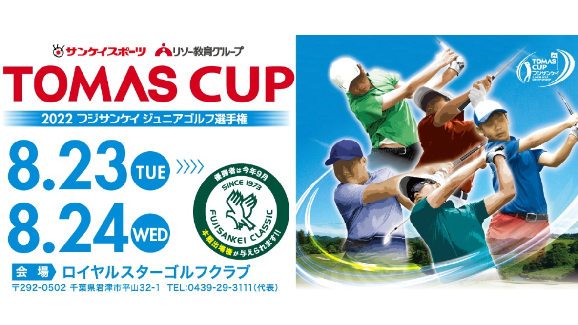 アマチュア競技・イベントTOMAS CUP 2022フジサンケイジュニア参加者募集 勝者はフジサンケイクラシックに出場2022年7月28日(木)午後0:00 -
