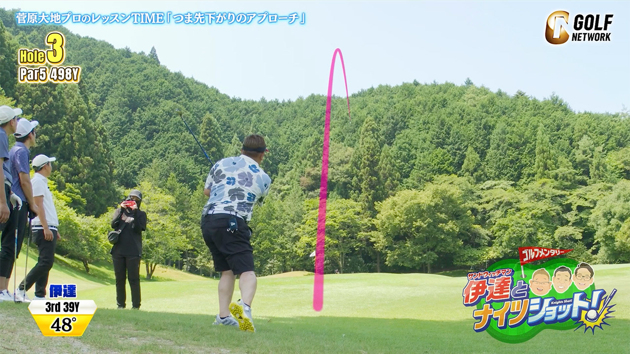 レッスン菅原大地レッスンでサンド伊達さんがナイスアプローチ! ツマ先下がりで気をつけたいポイント2023年10月6日(金)午前11:20 -