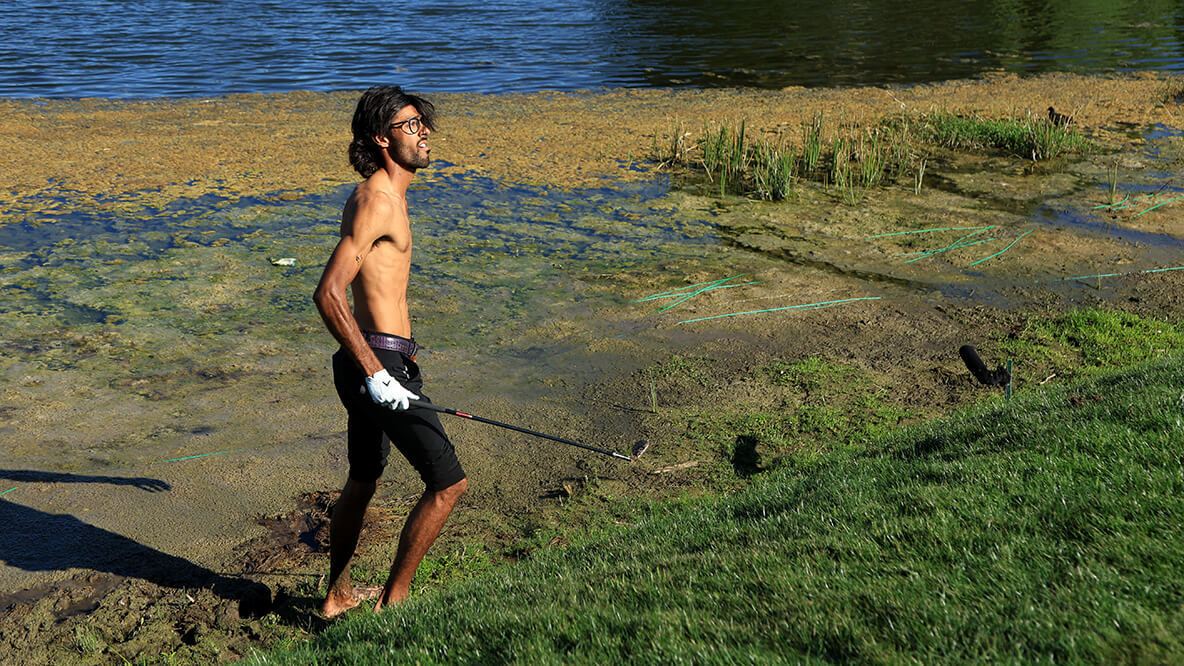 海外男子A.バティアのティーショットが沼に 上半身裸で脱出試みる2023年2月26日(日)午後0:20 -